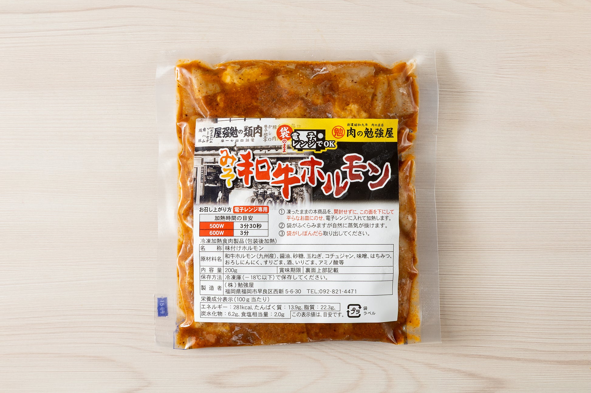 和牛ホルモン(九州産)、醤油、砂糖、玉ねぎ、コチュジャン、味噌、はちみつ、おろしにんにく、すりごま、酒、いりごま/調味料(アミノ酸等)
